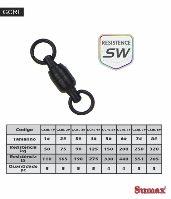 Construido en acero inoxidable 2 veces más resistente que el latón y con rodamiento de acero inoxidable de alta velocidad, que permite su uso en diferentes condiciones y con diferentes iscas. Diseño biselado que evita fricción con la línea.