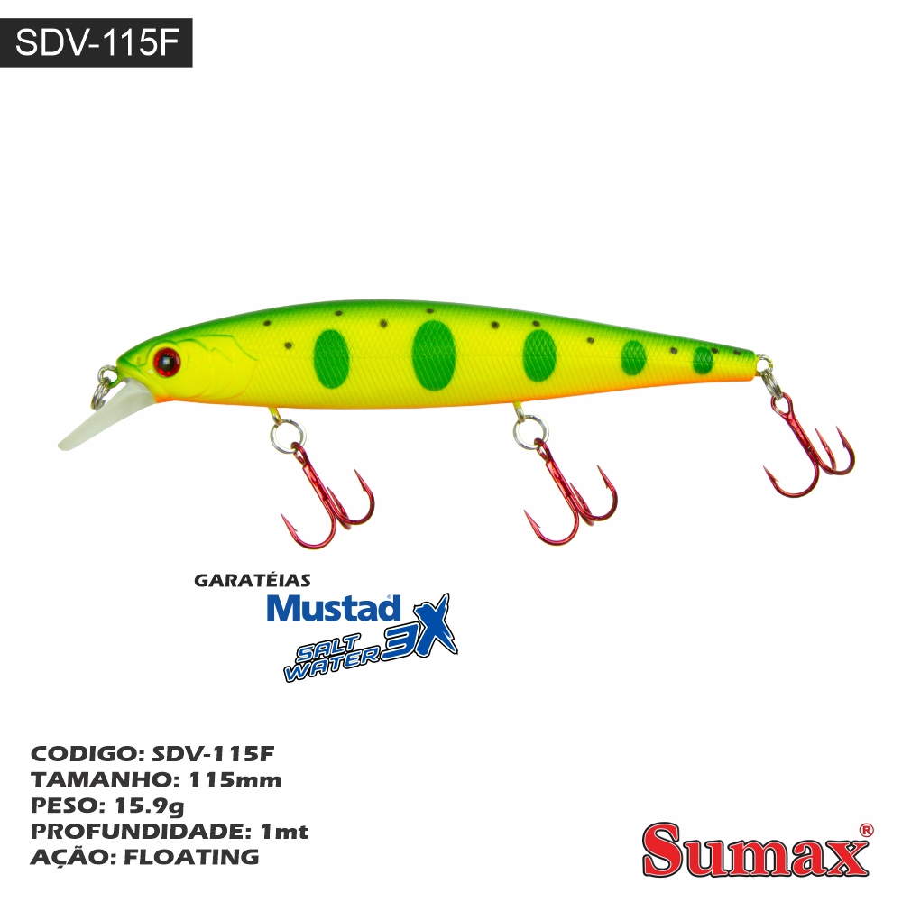 Vara – Dragon SDG Spin / CastPrev Isca – Deep Wobbler SDW-75FNext Isca – Devon SDV Código: SDV-115F Tamaño: 115mm Peso: 15.9g Profundidad: 1 m Acción: floating Código: SDV-145F Tamaño: 145mm Peso: 23g Profundidad: 0.8-1m Acción: floating SKU: Devon SDV Categories: Iscas, Pesca Related products Molinete Alfa AL Molinete,PescaRead more Molinete Dynamic DM Molinete,PescaRead more Linea Combat CBL-939 Linea,PescaRead more Isca Fat Shallow EE-FS-80 Iscas,PescaRead more